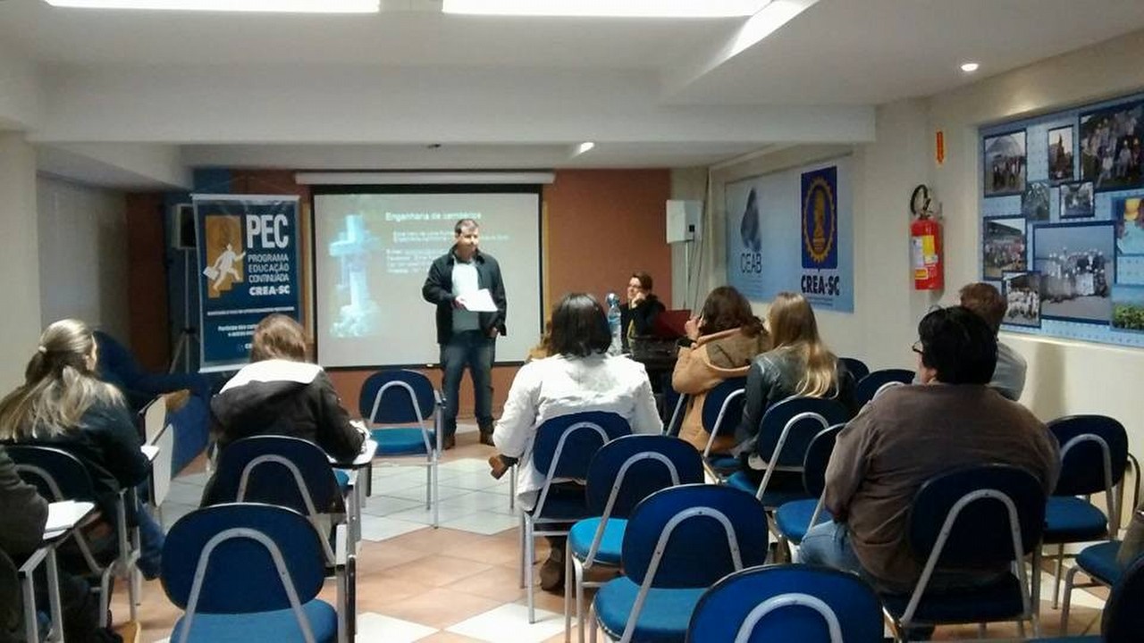 O CEAB Brusque em parceria com o CREA SC, através do PEC, realizou o Curso de Engenharia Ambiental de Cemitérios. O Curso teve abertura realizada pelo presidente do CEAB, Engº civil Ackson A. Siqueira da Silva e do Coordenador do Curso, Engº Agrº Juliano Piske.