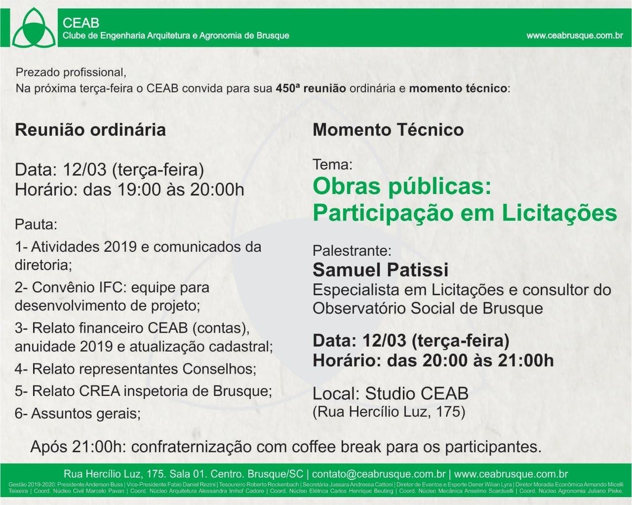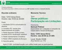 O CEAB convida para a 450ª reunião ordinária e Momento Técnico do mês de março de 2019: